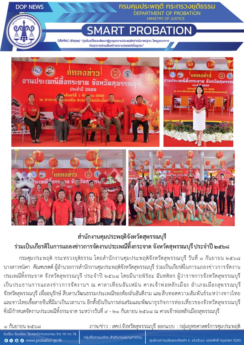 ร่วมเป็นเกียรติในการแถลงข่าวการจัดงานประเพณีทิ้งกระจาด จังหวัดสุพรรณบุรี ประจำปี 2568