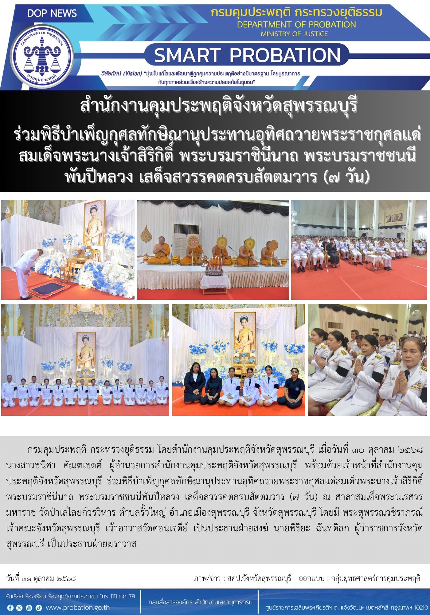 ร่วมพิธีบำเพ็ญกุศลทักษิณานุประทานอุทิศถวายพระราชกุศลแด่สมเด็จพระนางเจ้าสิริกิติ์ พระบรมราชินีนาถ พระบรมราชชนนีพันปีหลวง เสด็จสวรรคตครบสัตตมวาร (7 วัน)